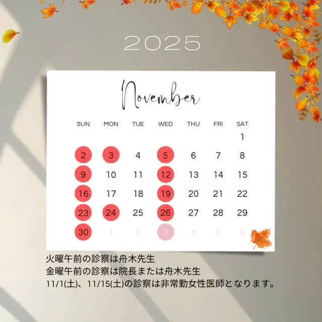 ※受付終了は午前診12:45、午後診17:45、火曜午後診は19:45です。万一間に合わない方はお電話ください。