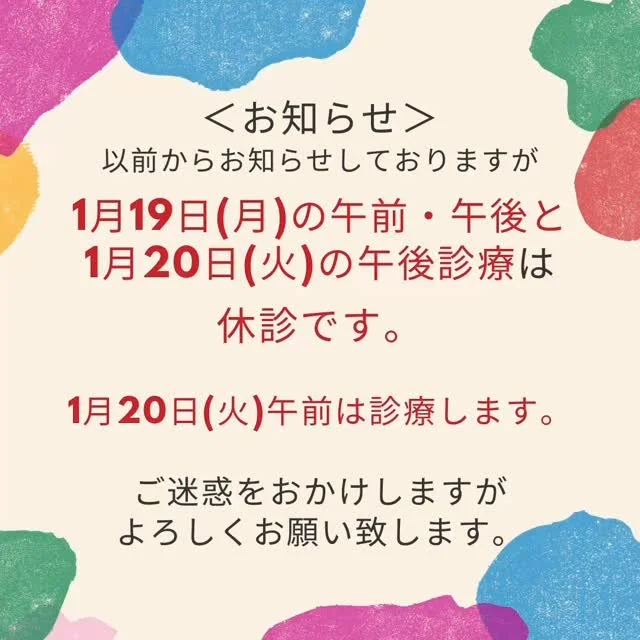 ※受付終了は午前診12:45、午後診17:45、火曜午後診は19:45です。万一間に合わない方はお電話ください。